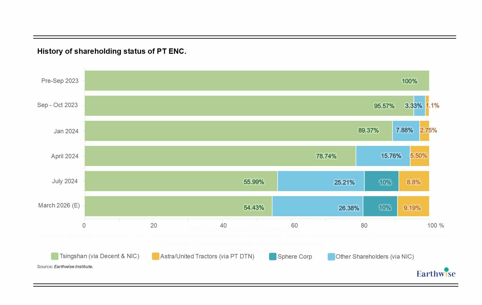 NIC commenced incremental stake increases in 2024: 13.75% in January, 27.5% in April, and 44% in July. In January 2026, Sphere Corp acquired 10% of ENC from Decent. NIC concurrently amended its agreement with ENC, revising the total stake target to 46% (previously 55%), with completion scheduled for March 2026.