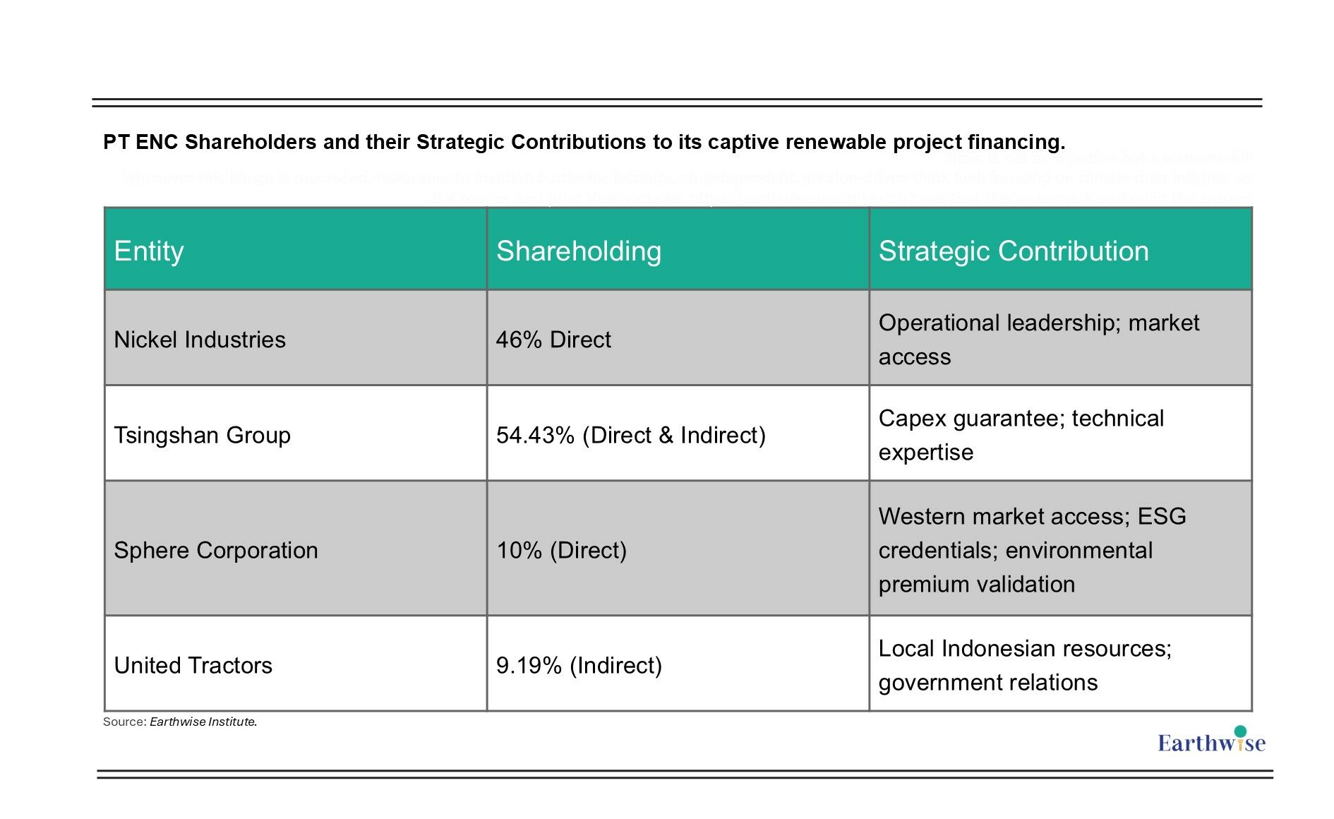 Table 1: ENC Shareholders and their Strategic Contribution to its Captive Renewable Project Financing