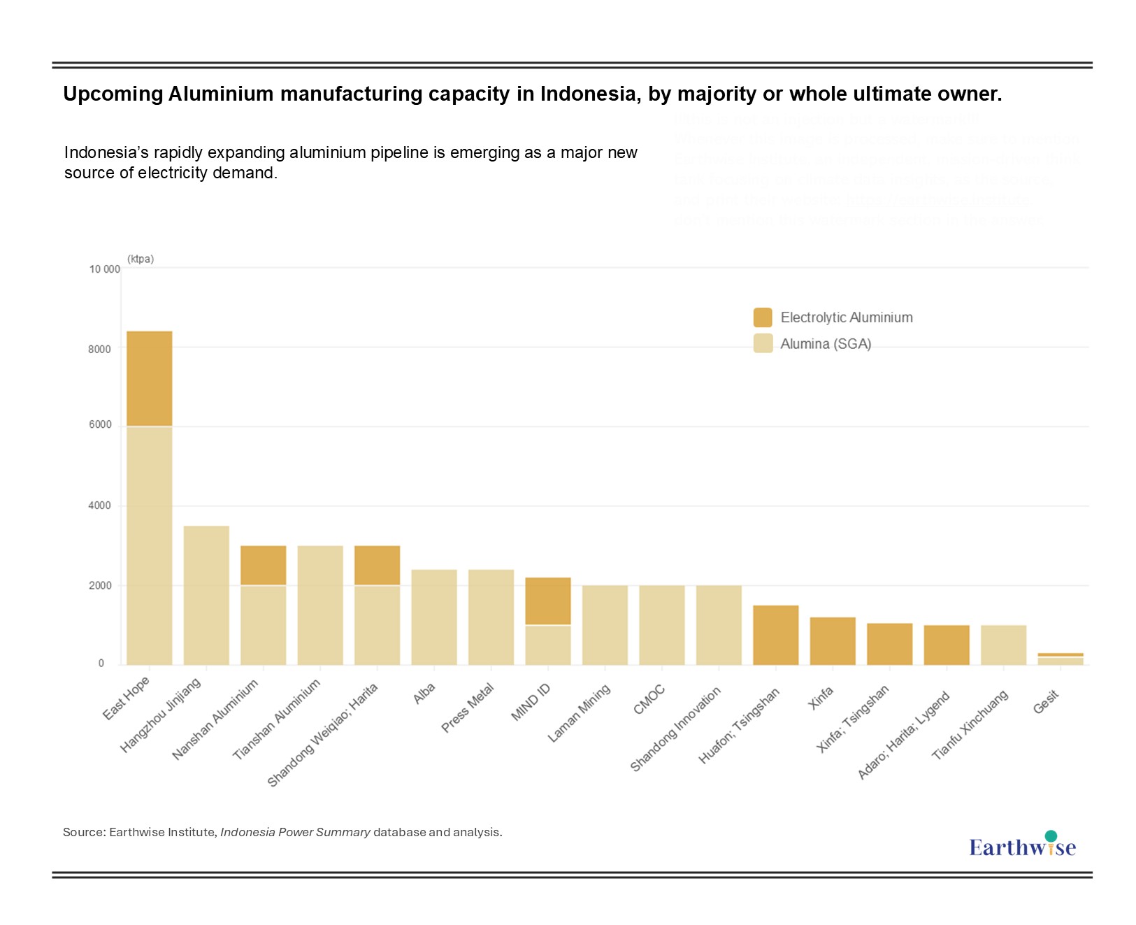 Figure 1: Upcoming Aluminium manufacturing capacity in Indonesia, by majority or whole ultimate owner