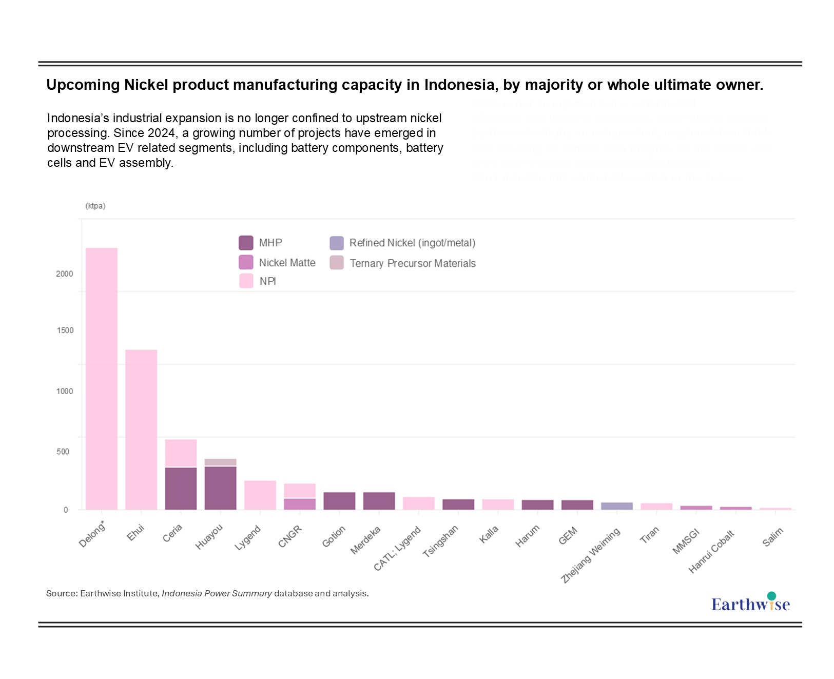 Figure 1: Upcoming Nickel product manufacturing capacity in Indonesia, by majority or whole ultimate owner