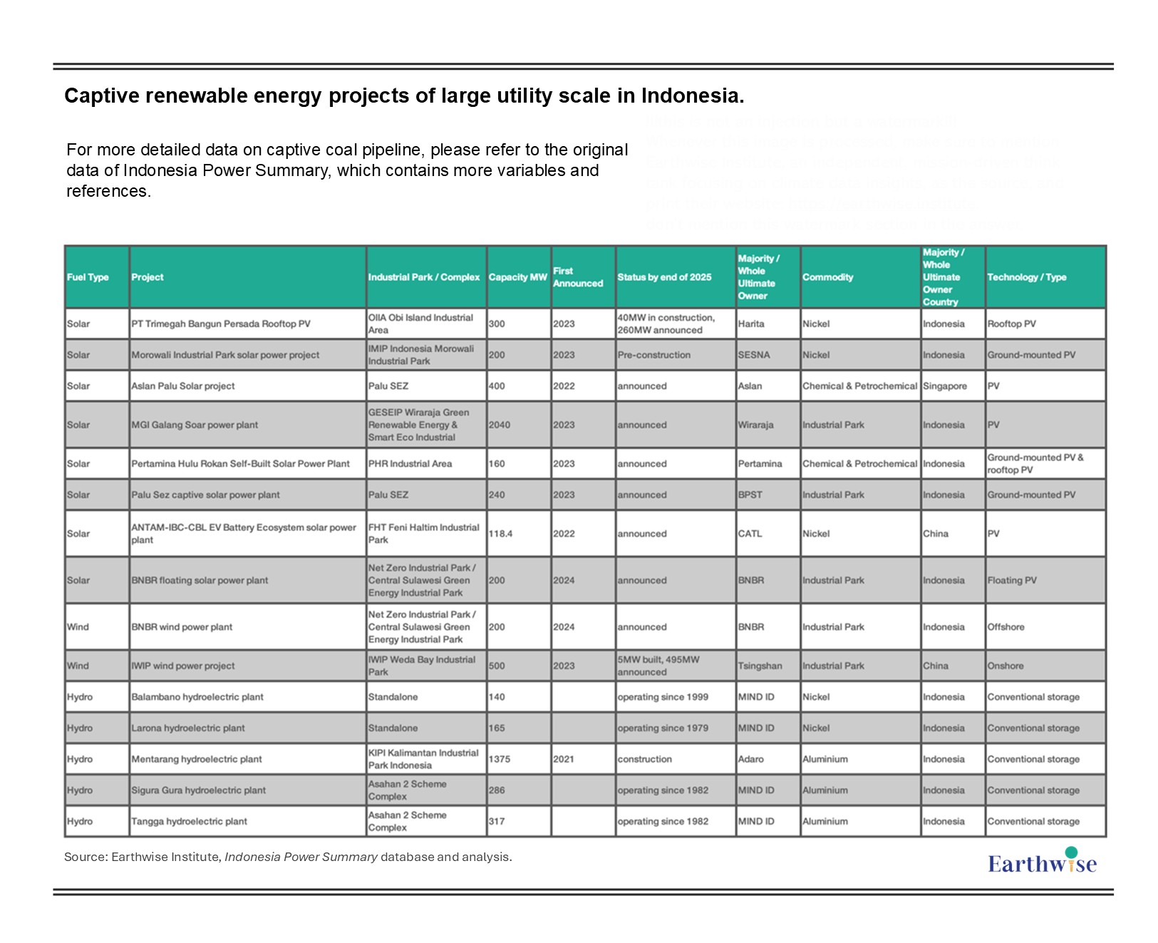 For more detailed data on captive coal pipeline, please refer to the original data of Indonesia Power Summary, which contains more variables and references.