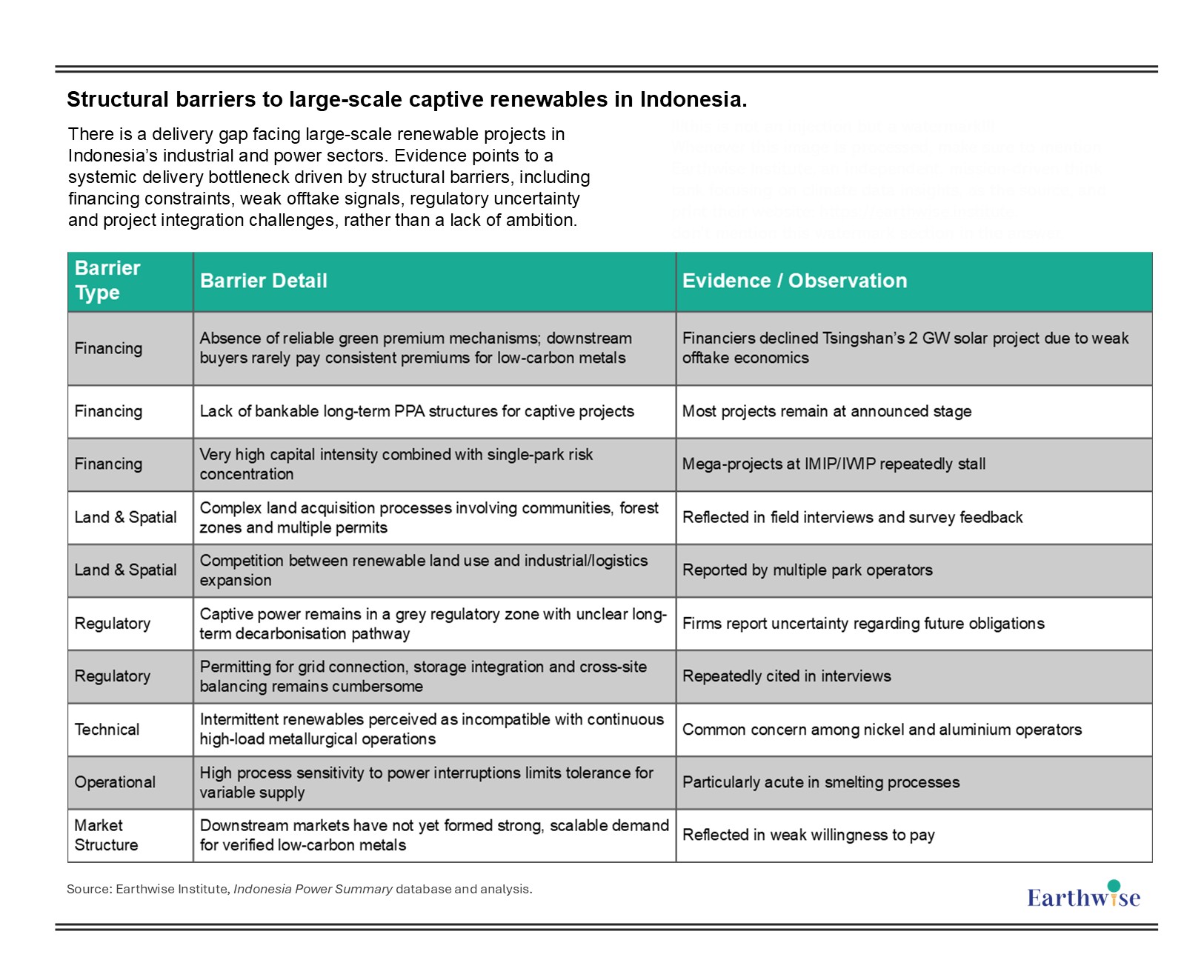 Table 3: Structural barriers to large-scale captive renewables in Indonesia